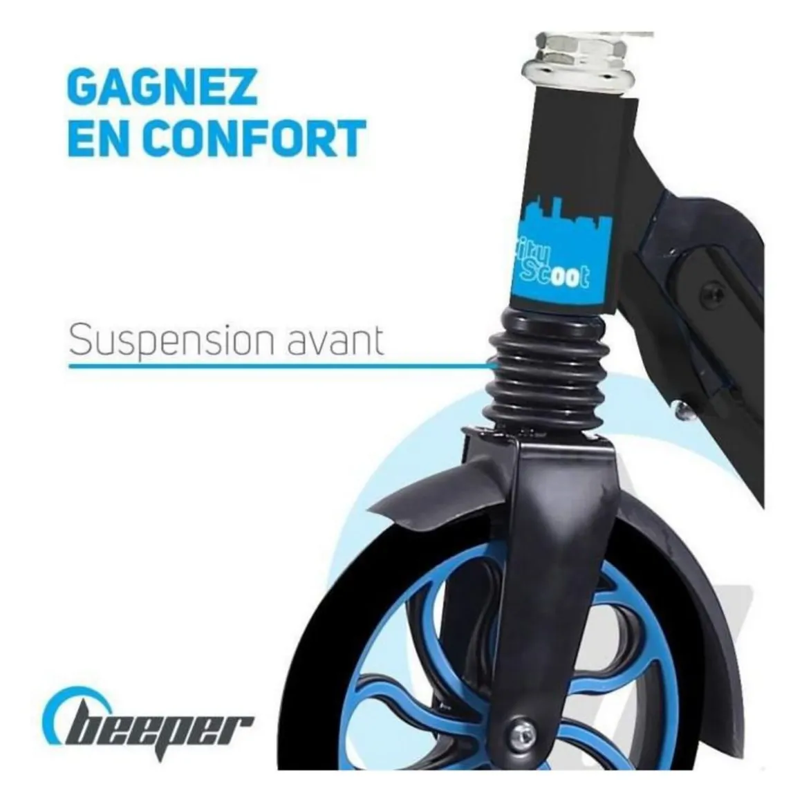 Trottinette mécanique – Adulte/Ados – Beeper City Scoot – Roues 8 » – Suspension avant – Cadre Noir – Sans frein guidon