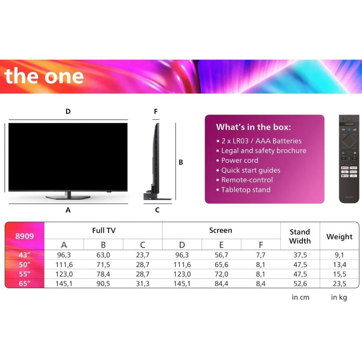 | Référence constructeur | 65PUS8909 The One Ambilight 144Hz 2024 | |