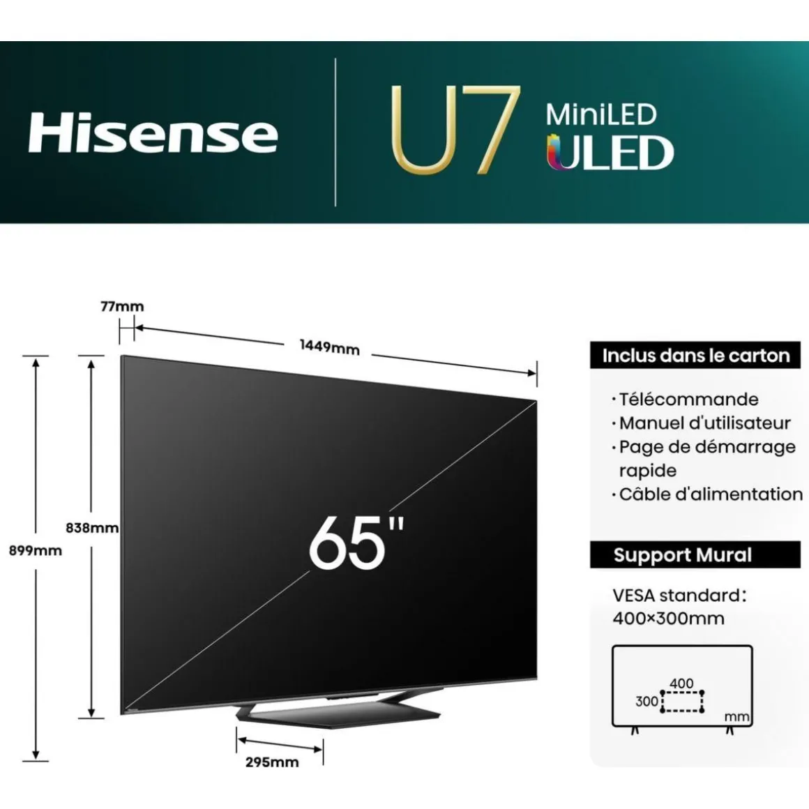 | Référence constructeur | MiniLED 65U7NQ 2024 | |