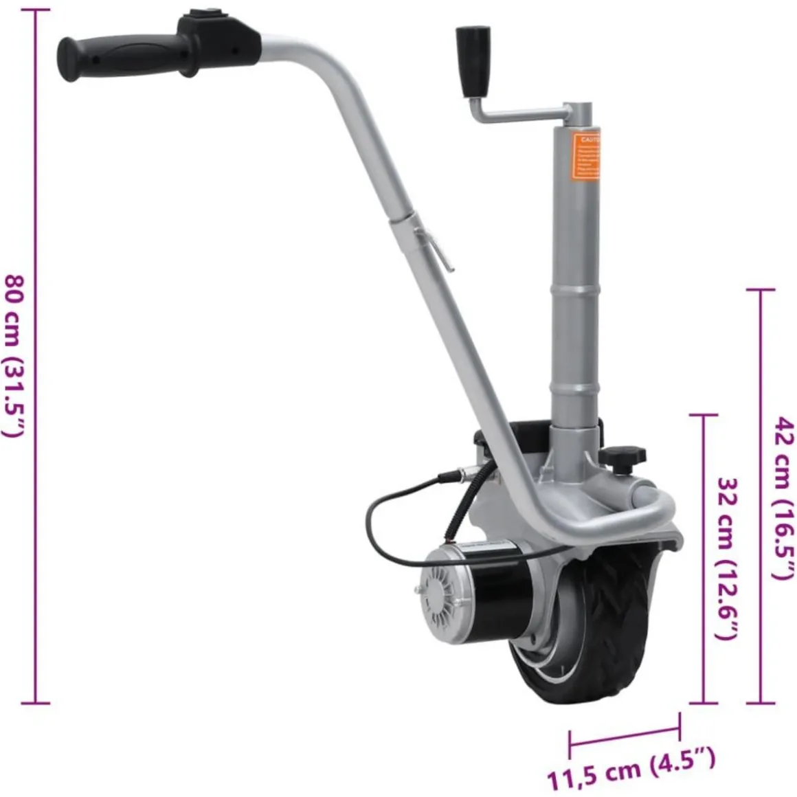 Grace a sa construction robuste et a son puissant moteur de 350 W, cette unite motrice a une capacite de charge maximale de 2 270 kg, ce qui vous permet de diriger la roulotte sans effort. Cette unite motrice ingenieuse est dotee d’un frein automatique ainsi que de vitesses avant et arriere sur le guidon, ce qui la rend polyvalente et resistante. Elle est egalement livree avec une pince reglable en hauteur pour une fixation facile a votre roulotte. La roue en caoutchouc antiderapante aura une excellente traction sur les terrains difficiles.