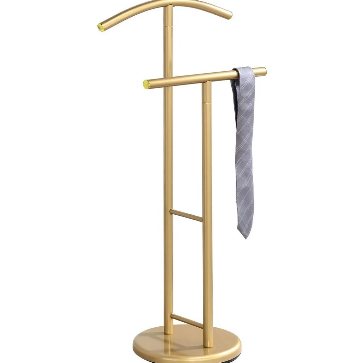 – Le valet est fabriqué en métal laqué doré.