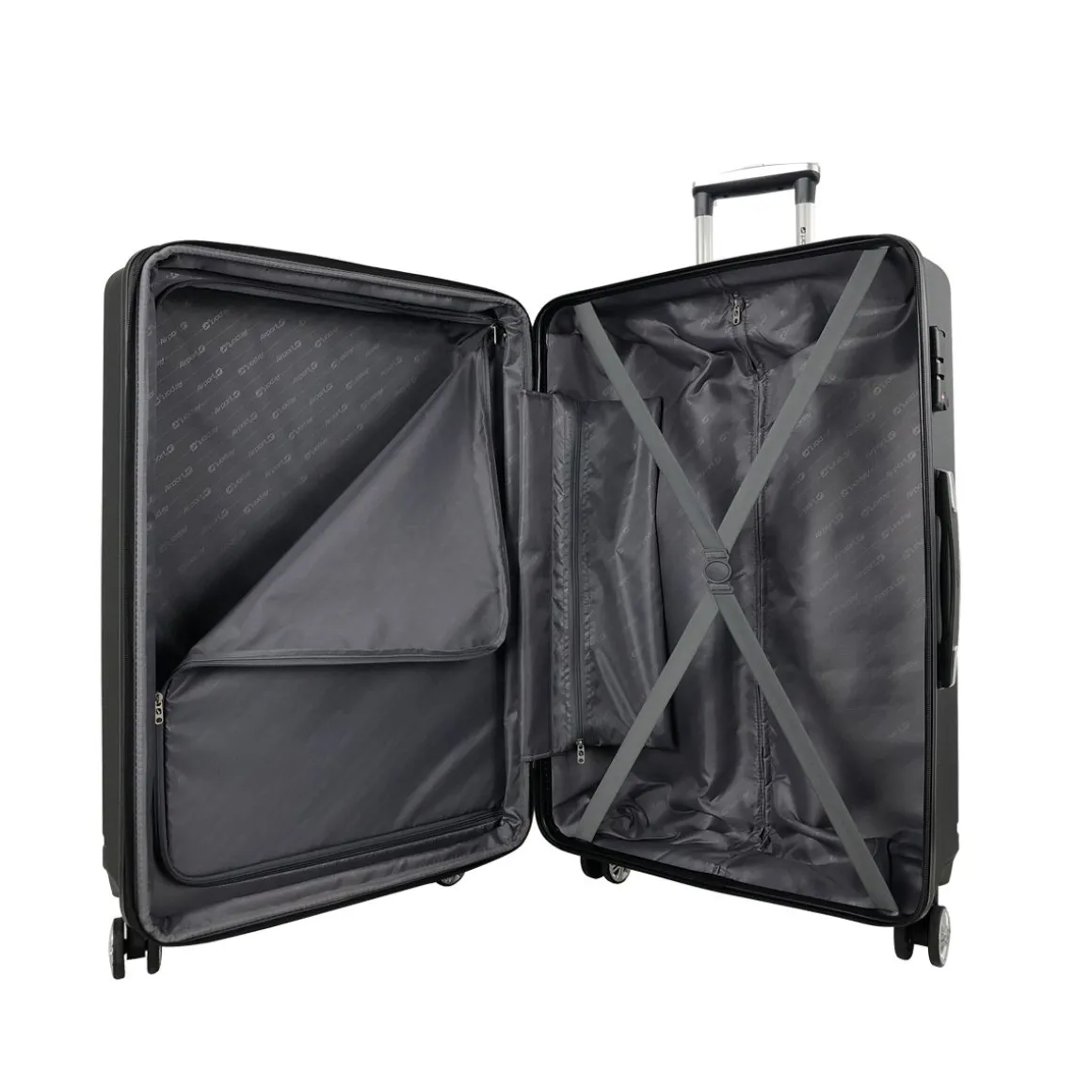 Cette valise est dotée d’un système trolley avec 8 roues, une poignée latérale, une fermeture zippée et un compartiment avec une poche centrale zippée.