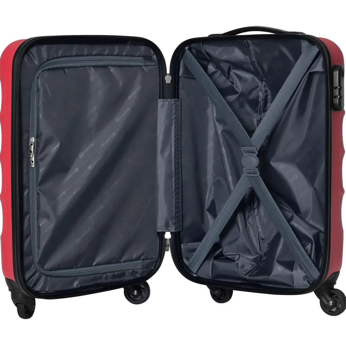 Sa coque en ABS est solide et offre une excellente résistance aux rayures et aux chocs. La valise est facilement maniable grâce à sa poignée supérieure, son trolley ajustable avec bouton poussoir, et ses 4 roues rotatives à 360° pour des déplacements fluides.