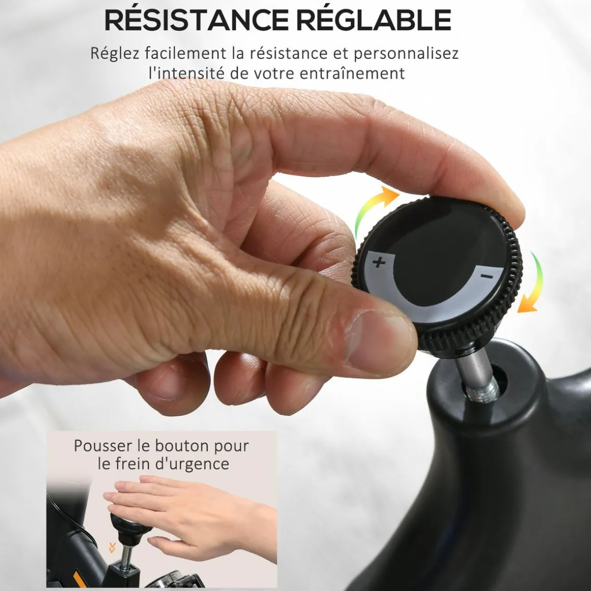 – Vélo d’intérieur à résistance réglable, avec frein d’urgence pour la sécurité
