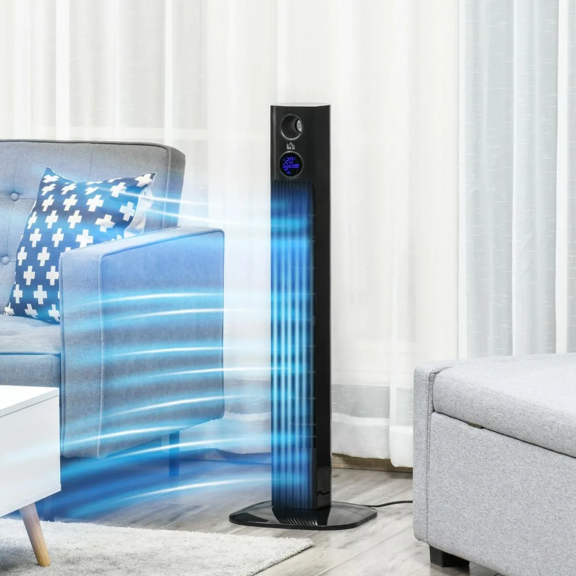 – Ventilateur colonne noir uni très élégant pour une intégration parfaite dans l’espace intérieur de votre choix : salon, chambre, bureau, etc.