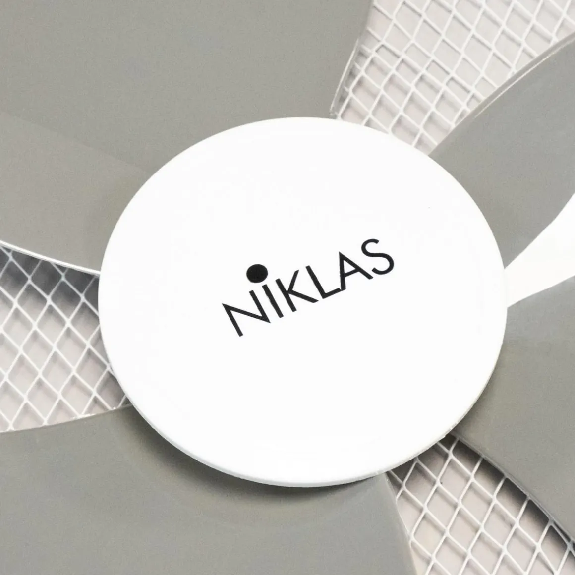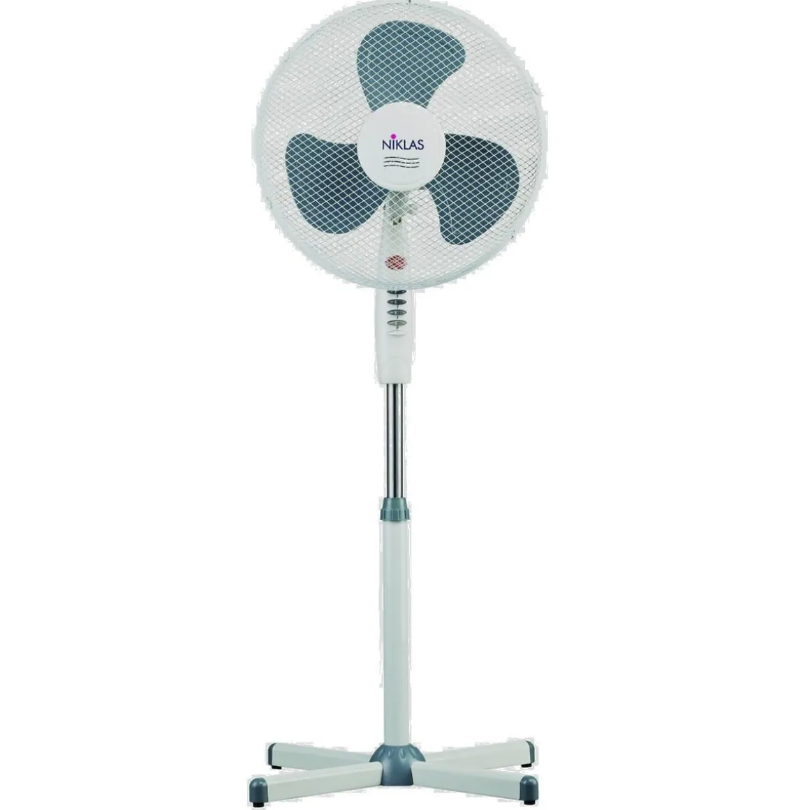 Ventilateur Électrique 45W NIKLAS WHITE sur pied à hauteur réglable jusqu’à 1.30 m. Ø de la ventilation : 40cm. Base en croix diamètre 60 cm. 3 réglages de vitesses.