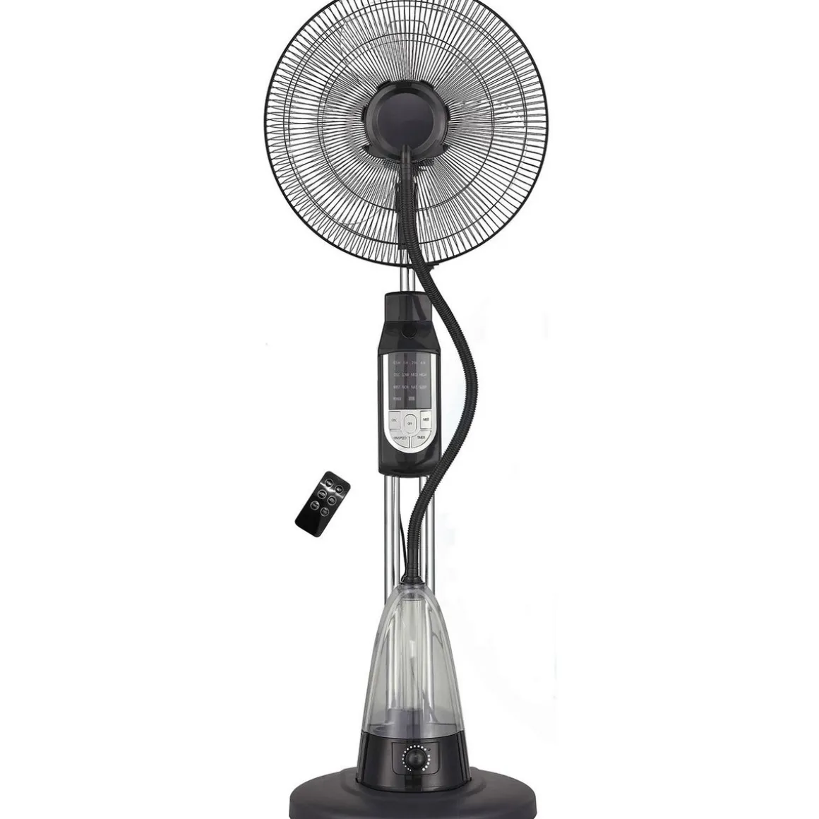 Grâce à ses 3 vitesses vous pourrez régler la puissance du souffle, de plus il est est équipé d’une fonction brumisateur et d’une télécommande pour que tout le monde puisse profiter de la fraîcheur procurée par ce ventilateur.