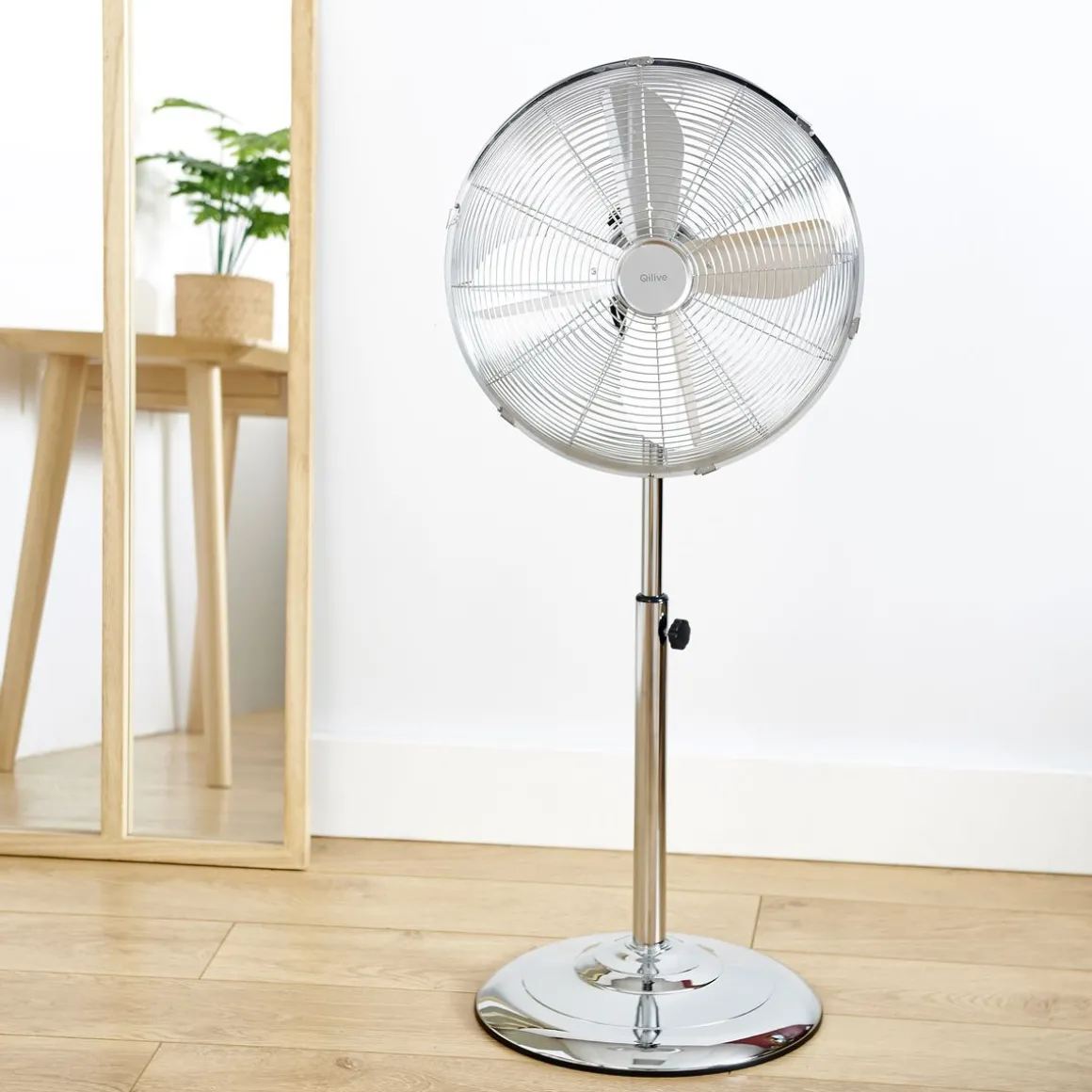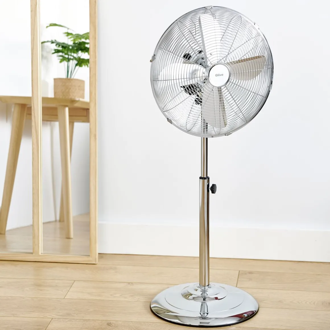 Le ventilateur sur pied QILIVE Q.6860 en chrome est un équipement de ventilation élégant et performant, idéal pour les chaudes journées d’été. Avec un diamètre de 40 cm, il souffle de l’air sur une grande partie de la pièce pour la rafraîchir. Le ventilateur est également équipé d’une oscillation jusqu’à 75 ° et est inclinable pour une diffusion optimale de l’air frais. La hauteur du ventilateur est réglable de 90 à 120 cm pour une utilisation personnalisée.