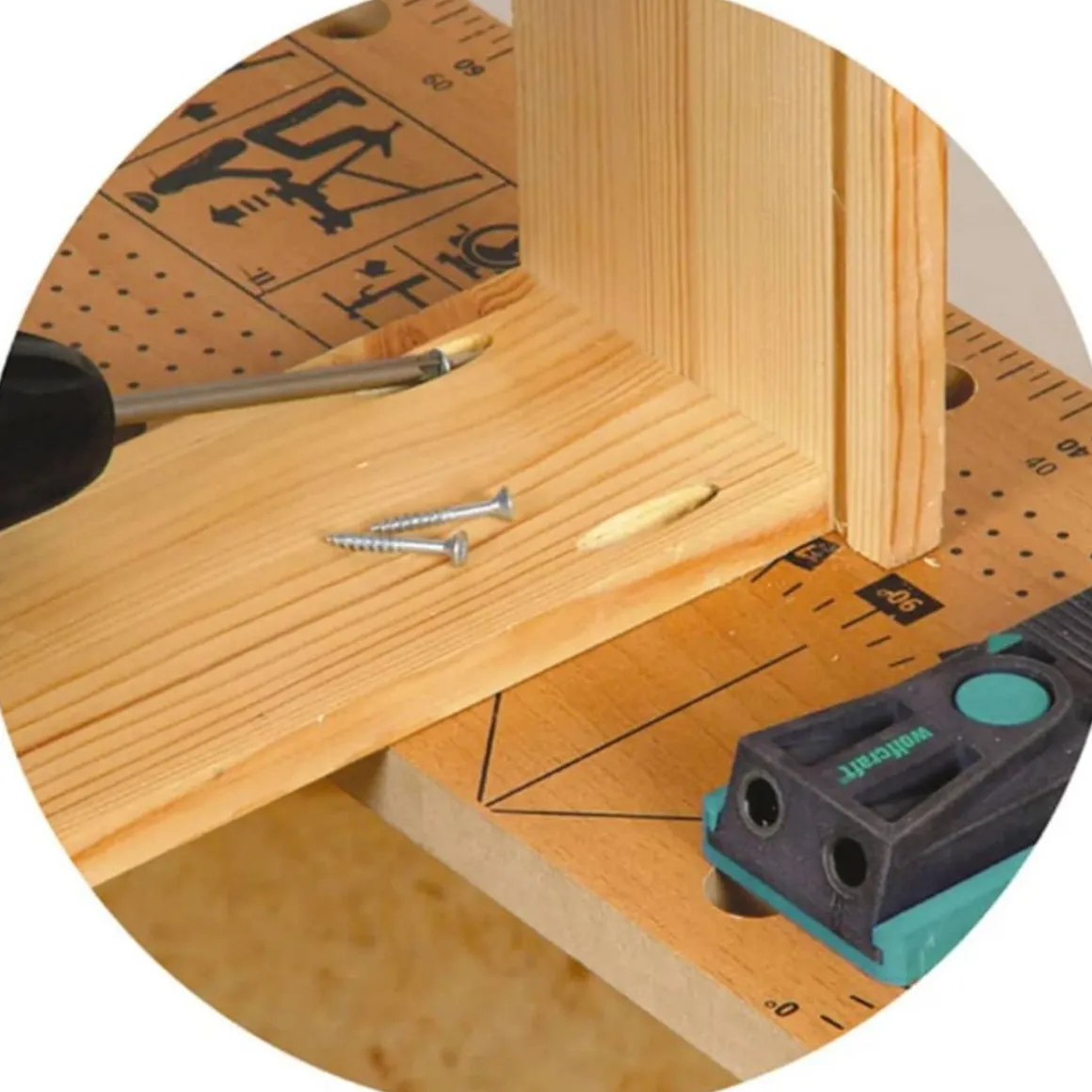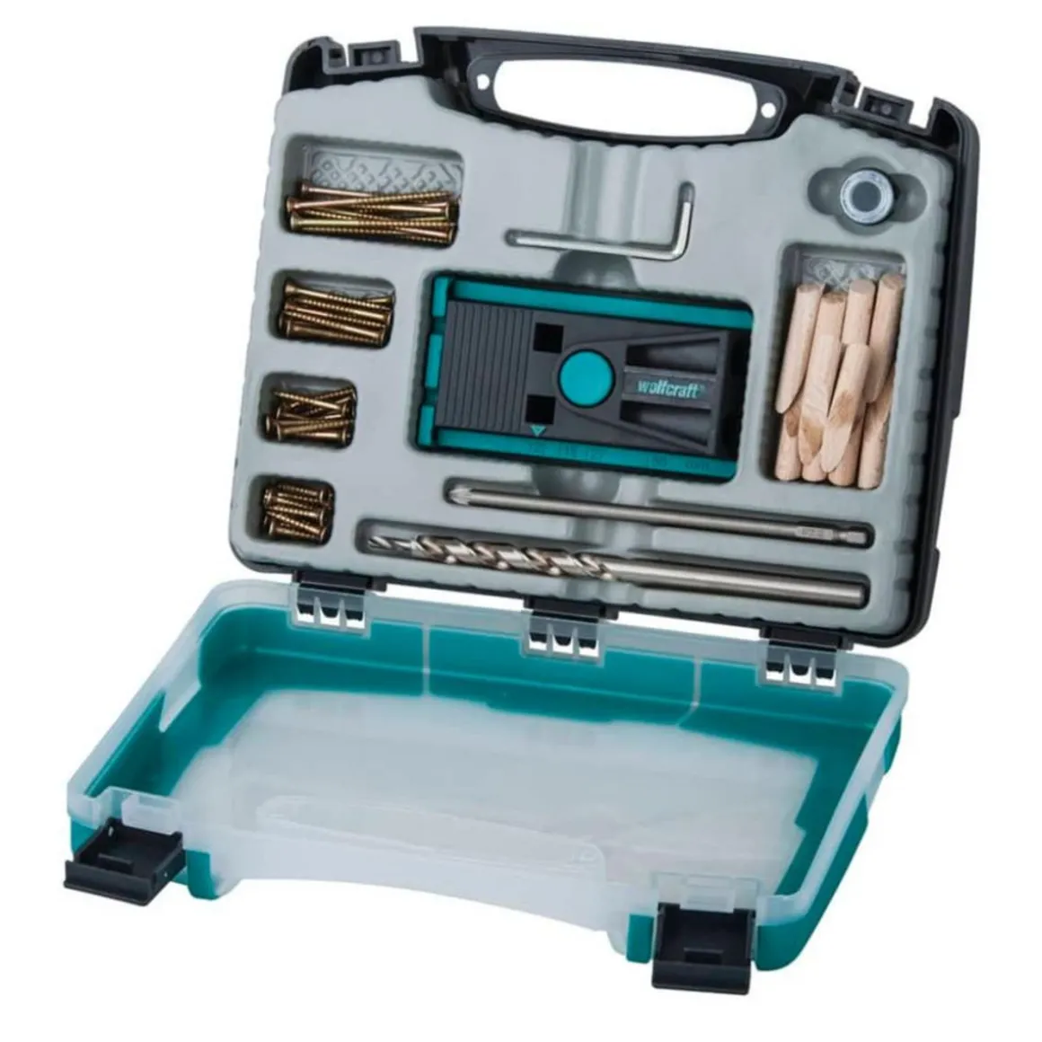 Cet ensemble complet de gabarits pour trous de poche de la marque wolfcraft contient tout ce dont vous avez besoin pour la menuiserie en trous de poche.