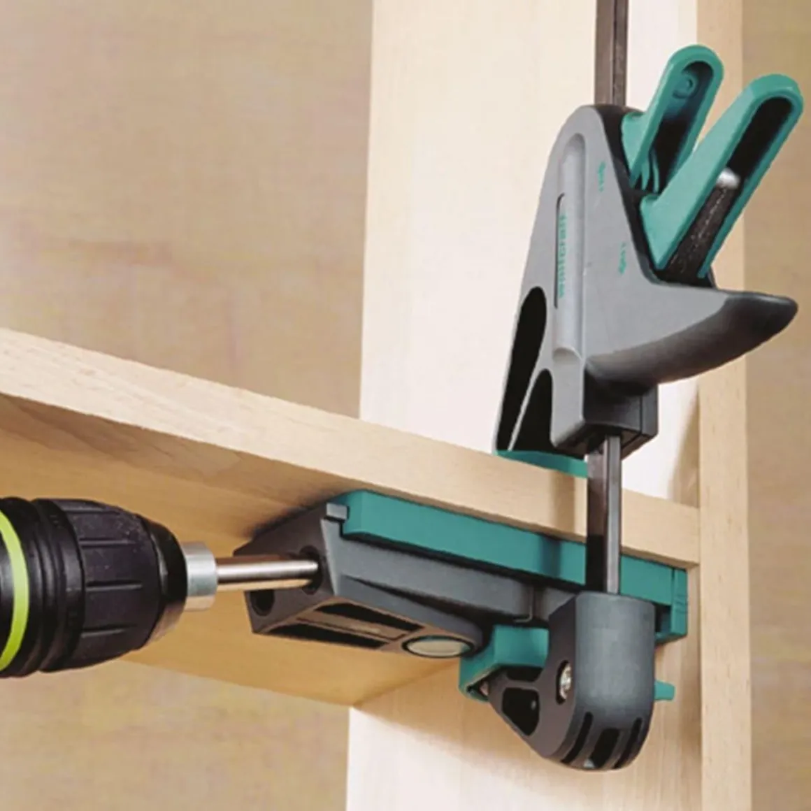 Vous pouvez percer des trous de perçage precis dans la piece a usiner avec cet ensemble de gabarit, joindre les deux pieces a usiner avec des vis pour former une liaison precise et stable, et connecter le trou de vis avec les couvercles inclus en bois de hetre de sorte qu’il devienne invisible. Avec la regle integree, vous pouvez mesurer l’epaisseur de la planche.